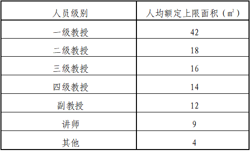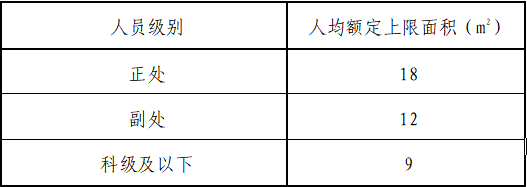 (一)党政办公用房按照单位党政管理干部编制,按表1分级分类给予人均定额上限面积。