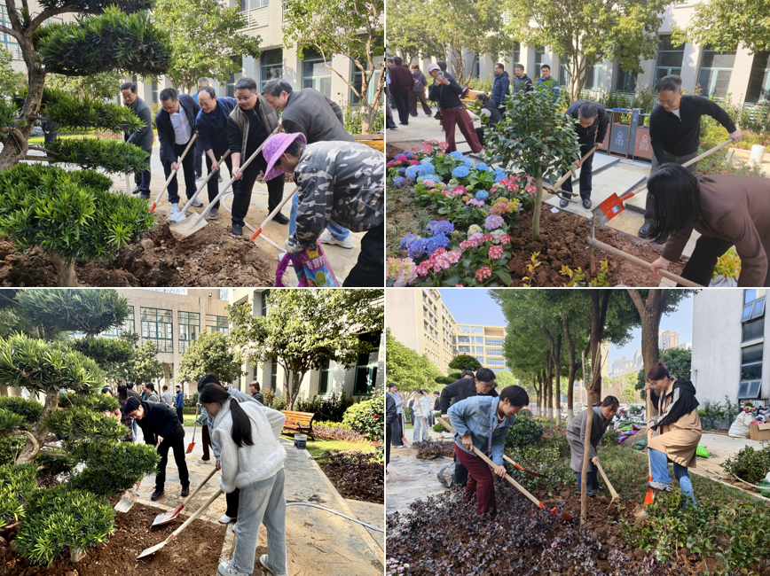 此次活动以“植绿筑家”为核心主题,师生们分工协作、携手劳作,翻土整地、扶苗栽种、浇水培土,将一株株树苗、一丛丛花草精心栽植于小花园中。大家在汗水与欢笑中感受劳动的温度,在泥土与绿意中感悟自然的韵律,既为校园增添了盎然生机,也让劳动教育与美育实践在指尖落地生根。小花园里,乔木与花草错落有致,既勾勒出清新雅致的生态景致,也为后续师生交流、校友休憩埋下伏笔。