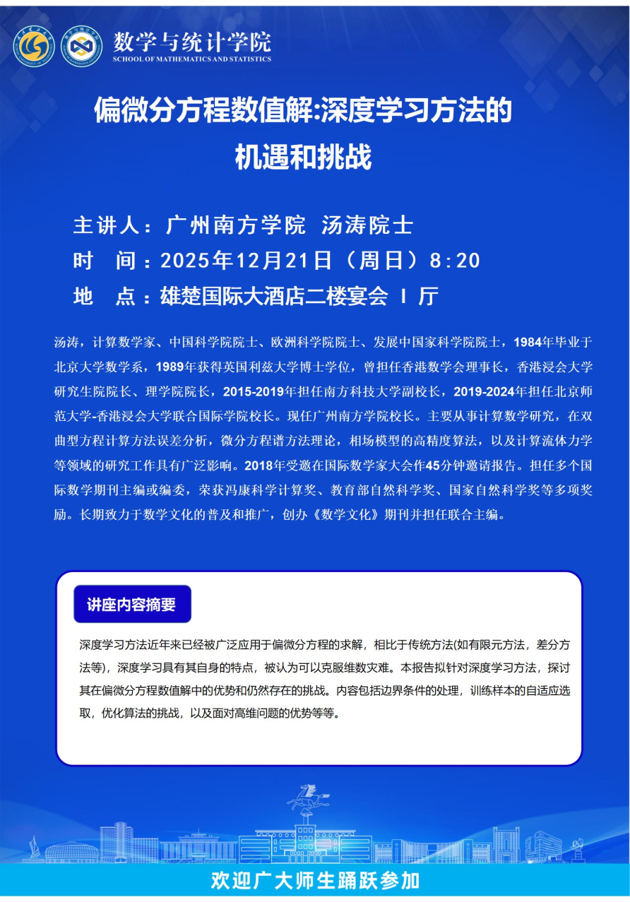 广州南方学院 汤涛院士-偏微分方程数值解:深度学习方法的机遇和挑战