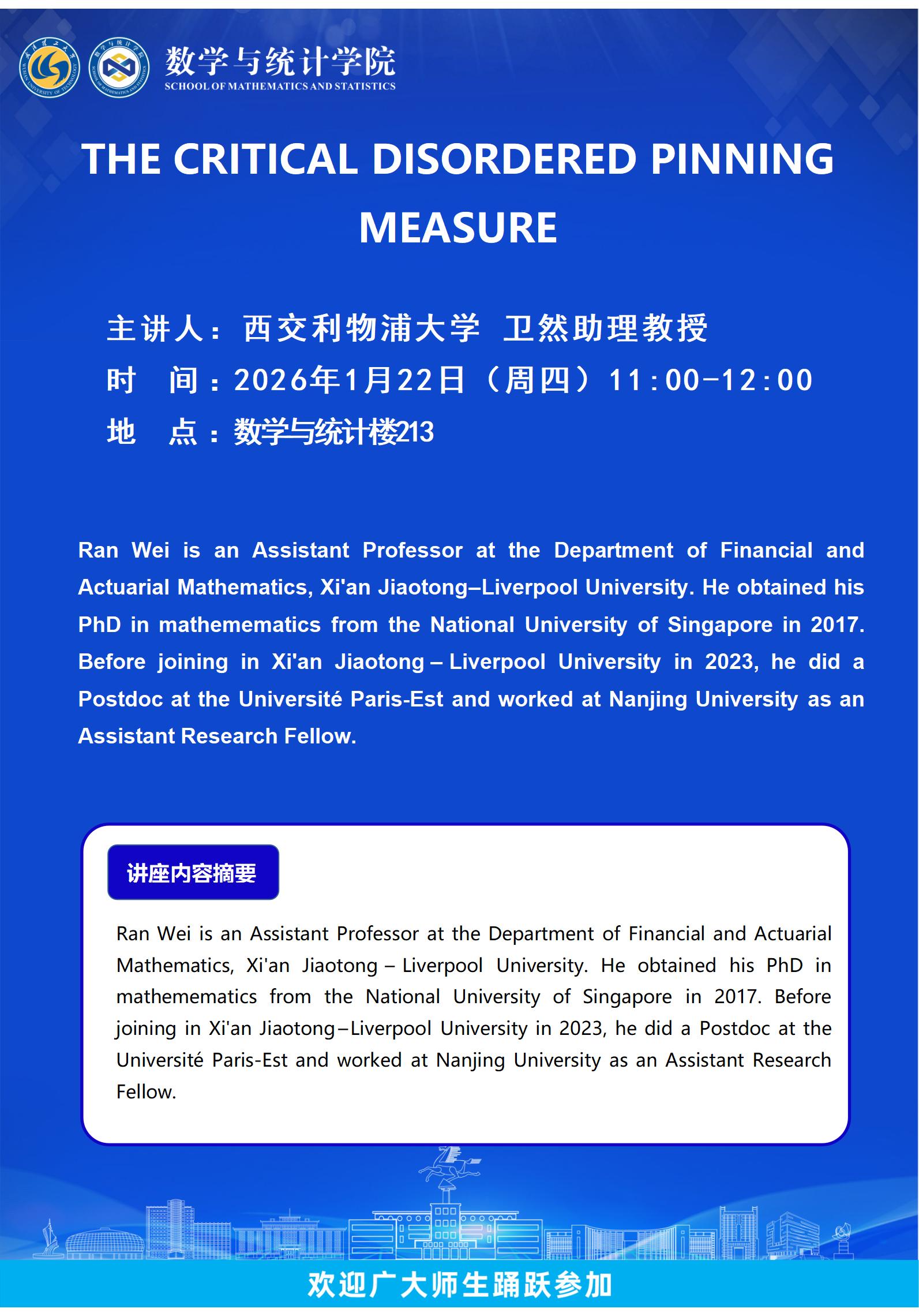 西交利物浦大学 卫然助理教授-THE CRITICAL DISORDERED PINNING MEASURE