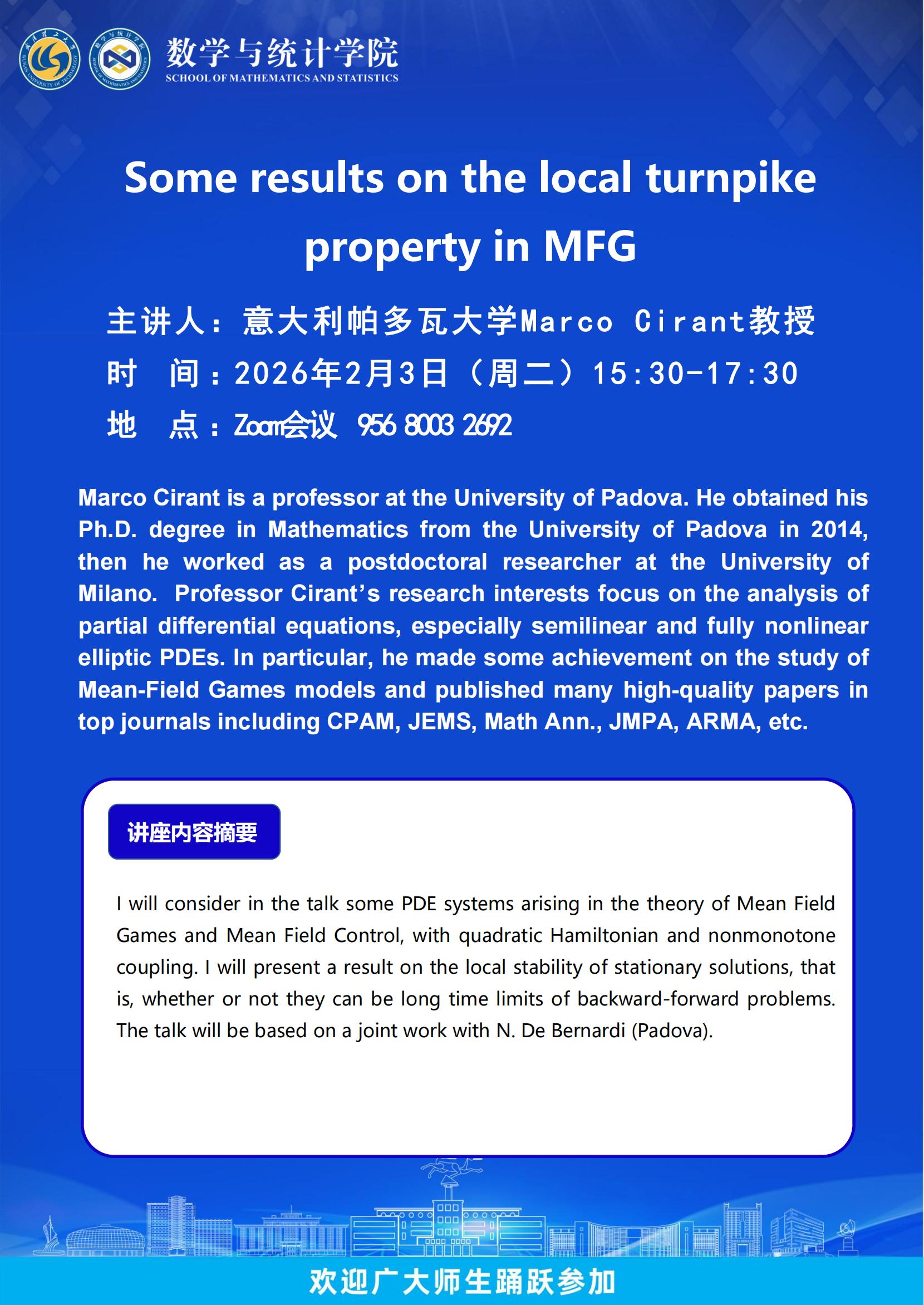 意大利帕多瓦大学Marco Cirant教授-Some results on the local turnpike property in MFG