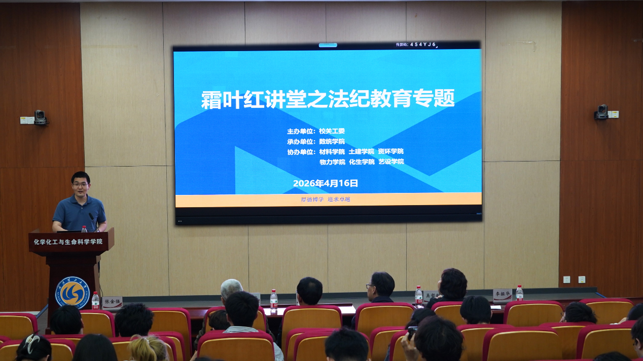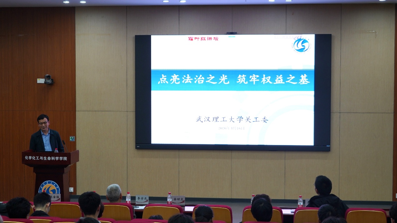 发布日期:2026-04-17为深入推进大学生法纪教育,强化青年学生法治素养与纪律意识,切实提升权益保护能力,4月16日,武汉理工大学霜叶红讲堂之法纪教育专题报告会于化生学院报告厅顺利举行。本次活动由校关工委主办,数统学院承办,材料学院、土建学院、资环学院、物力学院、化生学院、艺设学院协办。校关工委专职副秘书长吴哲敏,校离退休工作部正处级组织员李宇光,数统学院党委副书记李振华,数统学院团委书记张金强出席活动,特邀我校余功文教授担任主讲嘉宾,各学院学生代表到场聆听学习,讲座由李振华书记主持。