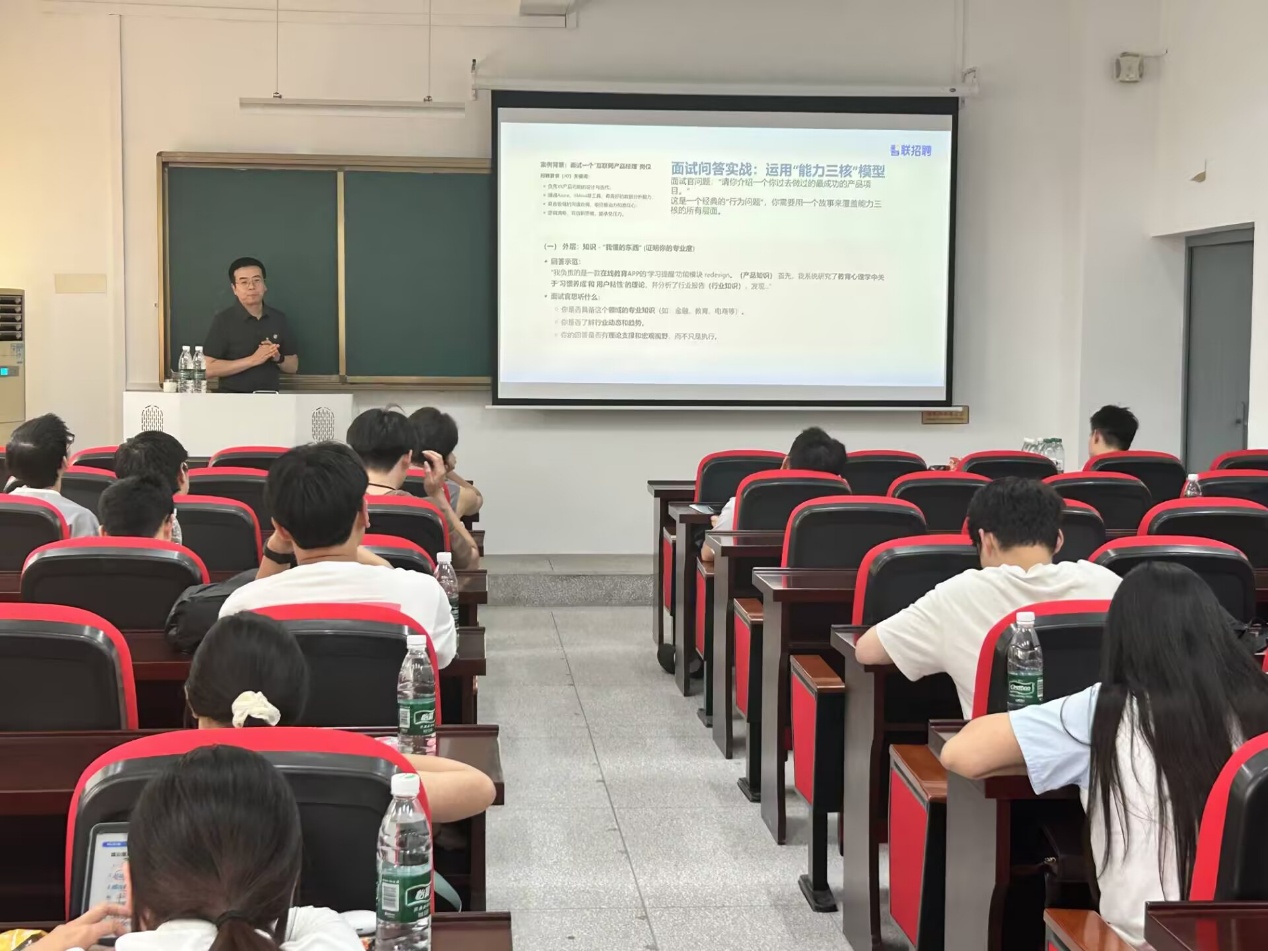董德北老师以丰富的招聘实战经验,围绕面试前的准备、面试中的沟通技巧、面试后的复盘等环节展开讲解,还通过现场模拟面试场景,让同学们沉浸式体验面试过程,掌握化解面试难题、展现自身优势的实用策略。