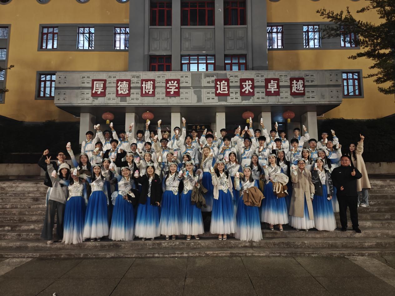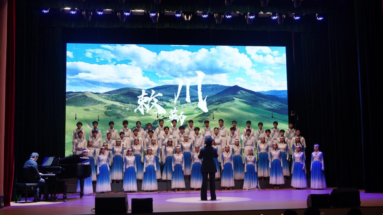 活动现场气氛热烈至极,各学院的合唱团队纷纷登台亮相,用动人的歌声赢得了现场观众经久不息的掌声。其中,数学与统计学院“617合唱团”以满腔的深情演绎了一曲《敕勒川》。前奏响起的那一刻,草原的辽阔便化作成群的牛羊,携带着现场每一位观众的心灵,一同穿越至那片高过人头的葱郁草丛之中,令人难以自拔。合唱团队员们目光深邃而辽远,仿佛正深情地眺望着远方那片无垠的草甸。他们的歌声清澈而悠扬,如草原上的清风徐徐吹过,营造出一种宏大而深远的意境,将现场观众带入一个诗意的世界。全场的观众无不屏息凝神,沉浸在这美妙的歌声之中。