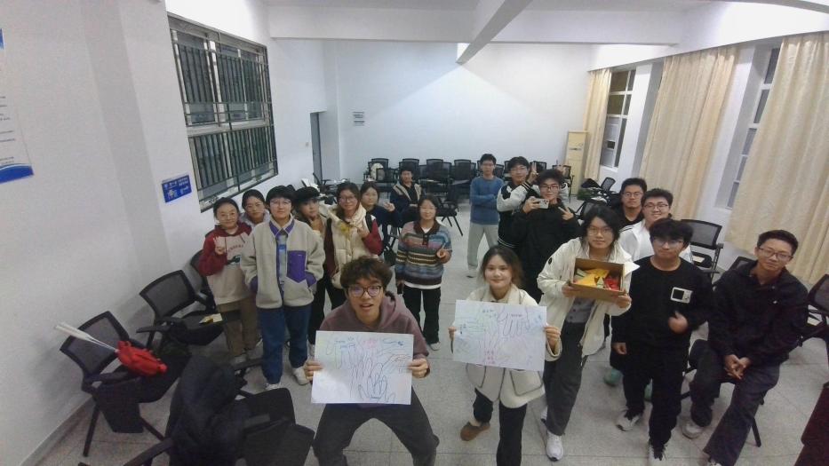 为缓解学业压力、提升心理韧性,数学类2504班开展了一场体验式主题心理班会。班会以破冰游戏营造轻松氛围,通过情绪双面墙鼓励同学们坦诚分享真实感受,资源地图汇集班级智慧梳理实用心理调适方法,并在烦恼收纳环节中以纸鹤寄语的形式完成情绪梳理。全体同学共同完成彩色手印画,留下温暖的班级记忆。