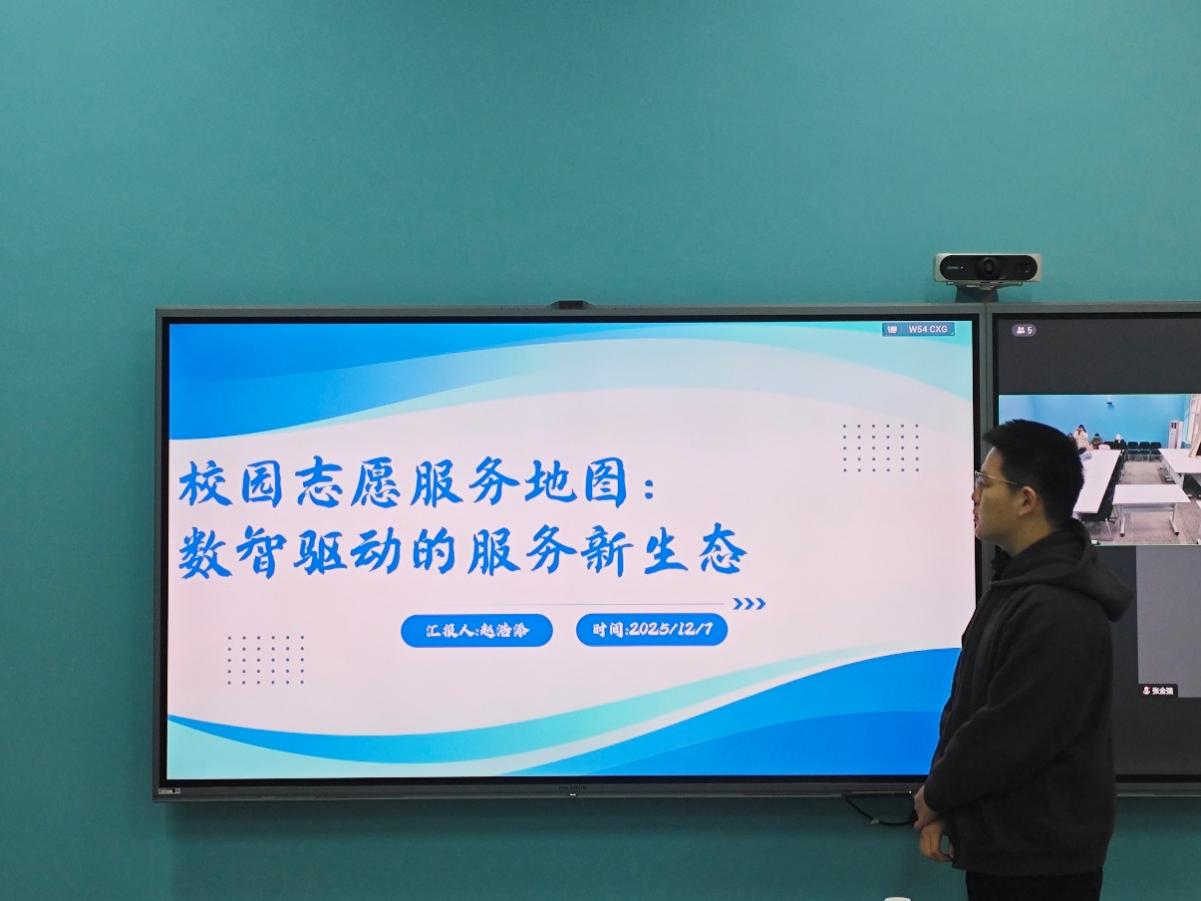 “校园志愿热力图”团队围绕“完善地图、深化分析”目标,汇报了当前任务进度:三大校区动态交互地图开发,志愿汇平台数据的每日同步,以及300余项活动信息的整合。团队依托Python、SPSS构建模型,识别出六大高频服务领域,生成热力图为资源配置提供依据,形成“数据整合—模型构建—实时更新”的可复制数字化范式。