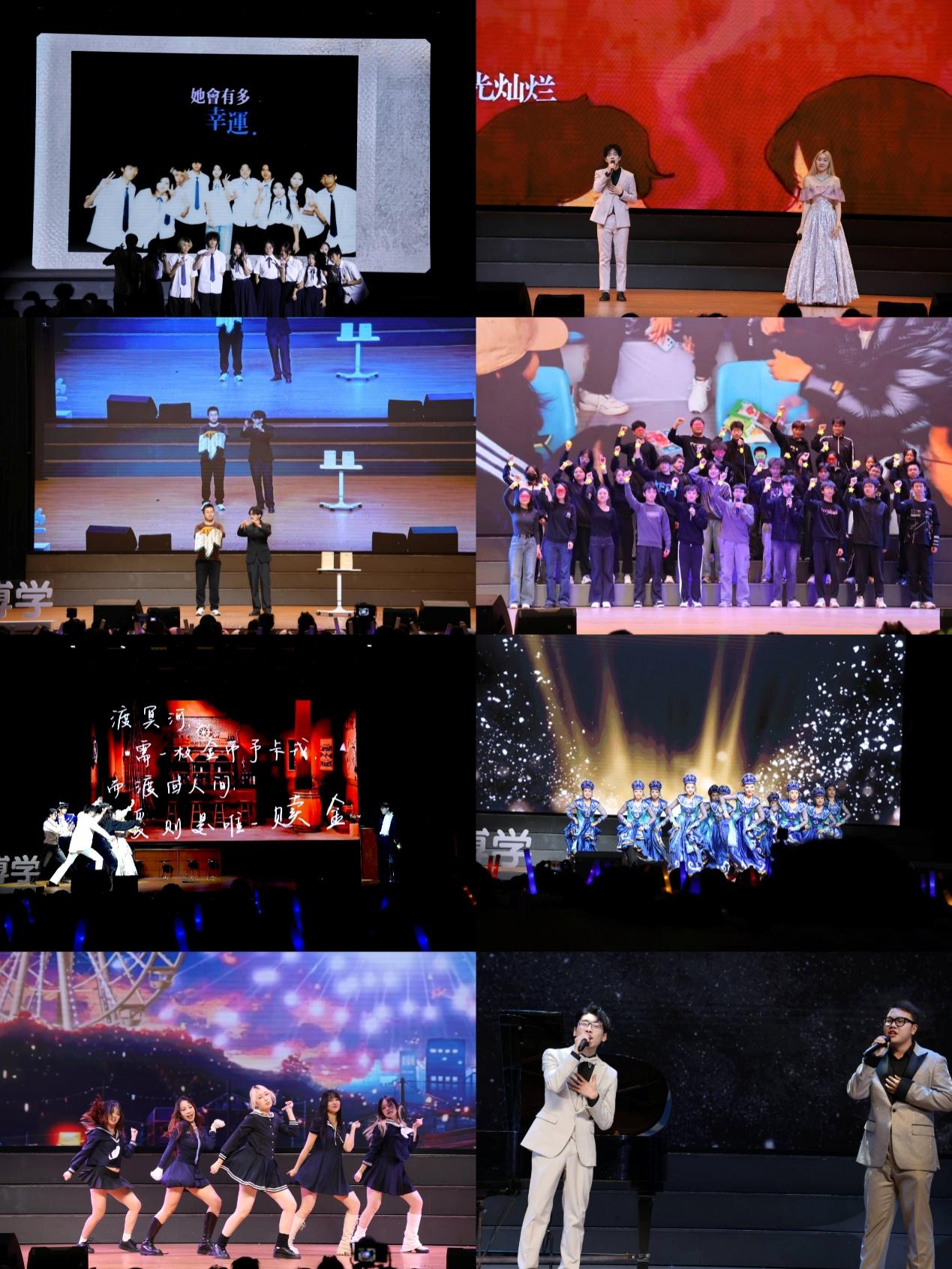 台上光影流转、音韵悠扬,台下荧光闪烁、掌声雷动,观众们挥舞着手中的荧光棒,用热烈的掌声与真挚的欢呼声回应每一个精彩瞬间。这场晚会让同学们深切感受到了学校大家庭的温暖与活力,也让他们对未来的学习生活充满了期待和信心。