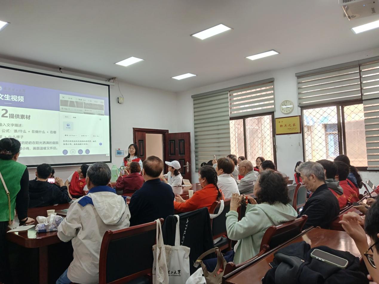 在志愿者的陪伴与协助下,老人们积极参与、大胆尝试,成功用AI生成了属于自己的短视频。有人把温馨的文字描述变成治愈画面,有人让尘封的老照片焕发生机,现场不时传来阵阵欢笑与赞叹。大家在轻松愉快的氛围中感受智能技术的魅力,不仅学会了AI视频创作的实用技能,更体会到数字时代带来的新鲜感与乐趣。志愿者们真诚、耐心、周到的服务,赢得老人们的一致好评。