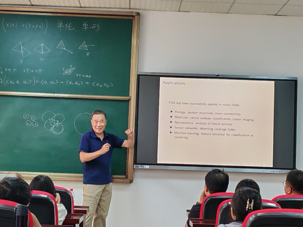 发布日期:2025-10-1010月9日,美国俄亥俄州立大学Chunsheng E.Ban教授于数学与统计楼213报告厅作了题为“Topological Data Analysis: Persist ent Homology”的学术报告。武汉理工大学副校长张笛、离退休校领导陈冬生出席报告会,数统学院师生参加了此次报告会。