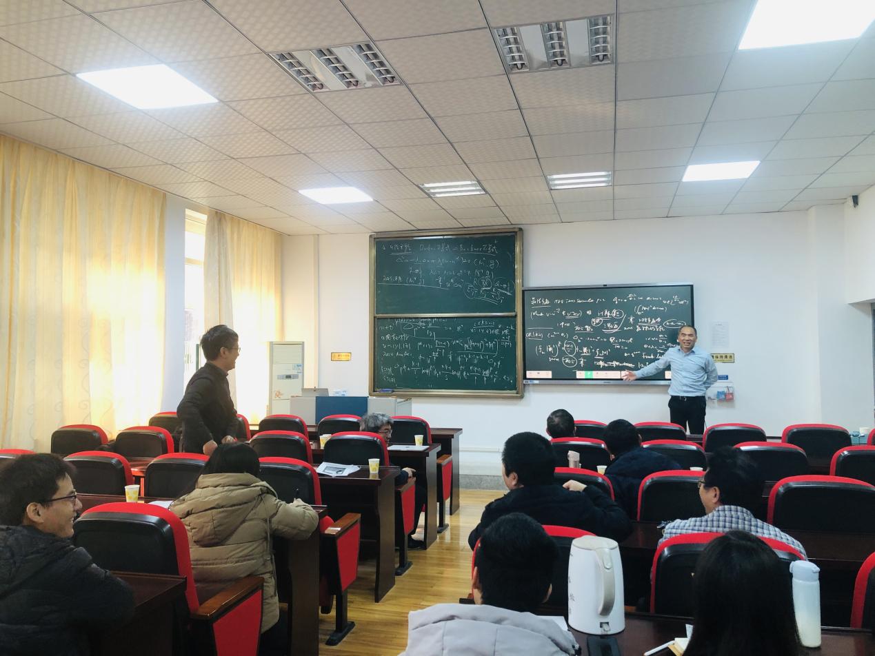 发布日期:2026-01-171月16日上午中国科学技术大学麻希南教授受邀为数统学院师生作了题为“Sobolev不等式极值函数在两个自变量情形的研究”的学术报告,数学系与数学中心相关老师和研究生听取了报告。
