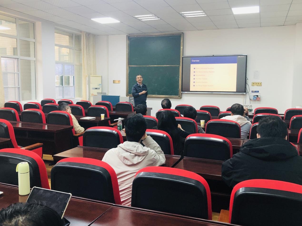 发布日期:2026-03-163月11日下午,美国圣母大学韩青教授受邀来学院开展学术交流,在数统楼209教室为学院师生带来了一场题为“Solutions of the Minimal Surface Equation Near Infinity”的精彩学术报告。报告会由数学中心主任周焕松教授主持。