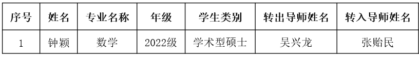 【数学与统计学院】关于同意钟颖同学转导的公示
